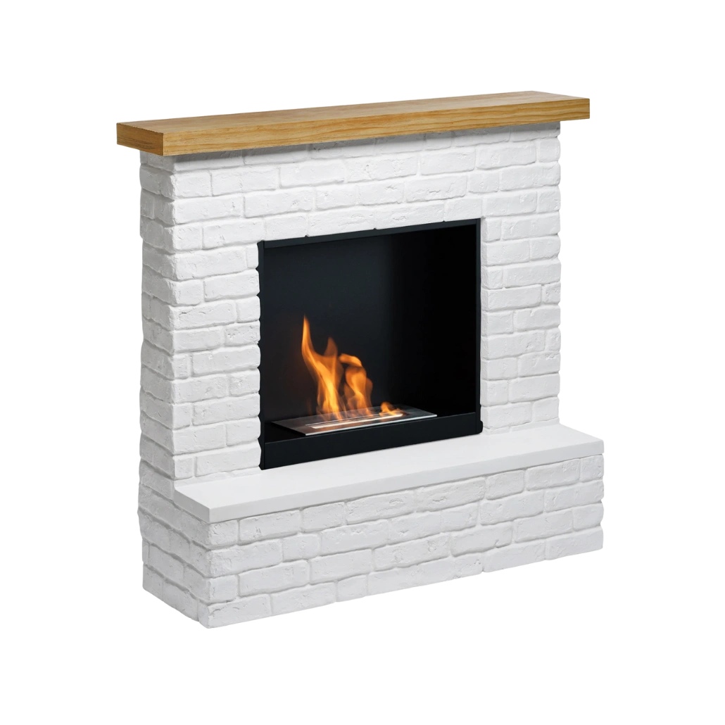 Cu design deschis si flacara autentica, Pachetul Rolf Brick White inclus cu bioetanol FreeFlame aduce caldura naturala si o atmosfera placuta, eleganta si relaxanta, fara fum, miros sau reziduuri.