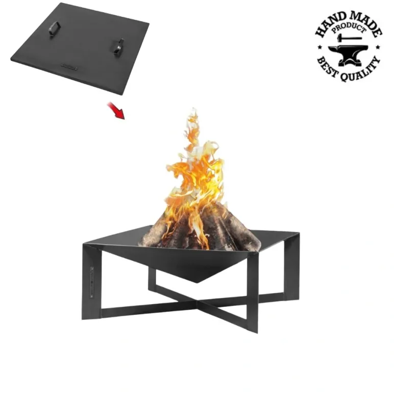 Vatra este lucrata manual in Europa din otel gros de 2 mm, pentru rezistenta si utilizare indelungata. Constructia complet sudata ofera stabilitate ridicata si un aspect curat, potrivit pentru curte sau terasa. Poate fi folosita pentru foc ambiental, incalzire sau gatit, iar in timp otelul dezvolta o patina naturala, fara sa afecteze functionalitatea.