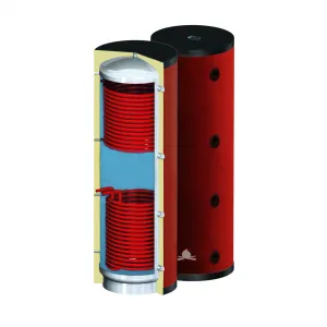 Puffer 1000 l cu 2 serpentine, ideal pentru instalatiile de incalzire cu 2 surse, si pot functiona simultan. Cu un puffer sunt reduse pierderile de caldura, avand un consum redus si o eficienta maxima.