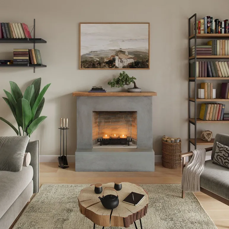 Semineul ROLF GREY Zen Flame de la TAGU este un semineu cu lumanari, confectionat dintr-o singura piesa din Lightstone, ce imita textura caramizii si a cimentului, oferind un aspect autentic si fara imbinari. Finisat manual si insotit de o mantala din lemn natural cu efect vintage, acest semineu produce flacari naturale, sunete relaxante si o aroma placuta, transformand orice incapere intr-un ambient cald si primitor.