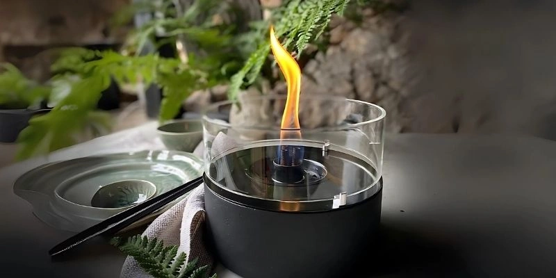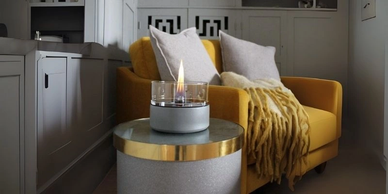 Semineu portabil TenderFlame CAFE 18 Beton Ceramic cu baza din ceramica si sticla protectoare, perfect pentru a crea o atmosfera relaxanta si rafinata, fara fum sau mirosuri.