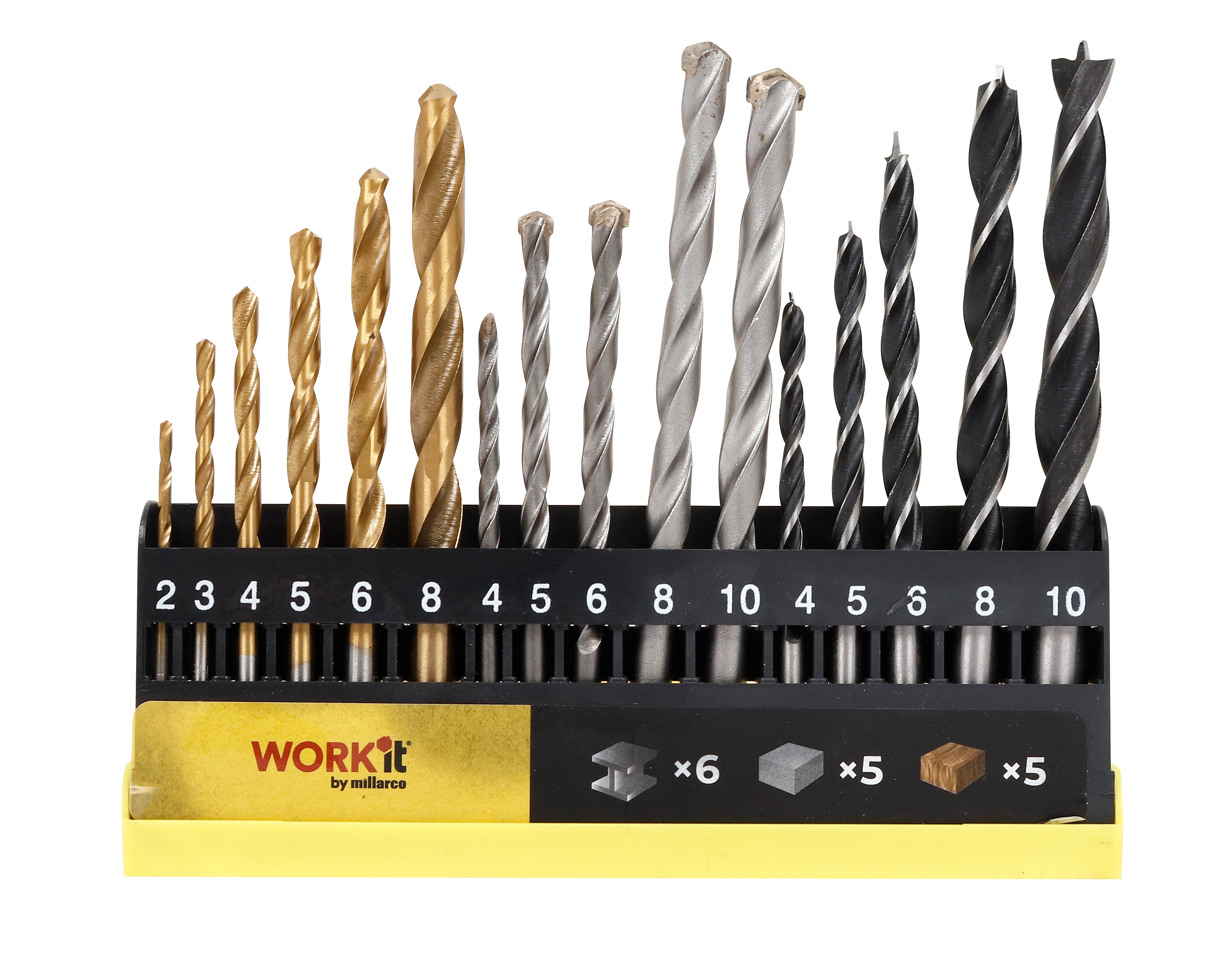 Setul combinat de burghie Millarco, 16 piese, este conceput pentru gaurirea eficienta intr-o varietate de materiale, oferind o solutie practica pentru lucrari diverse. Setul include burghie dedicate pentru metal, zidarie si lemn, permitand utilizarea aceluiasi kit pentru aplicatii diferite, fara a schimba frecvent accesoriile.Pentru lucrari in metal, setul contine burghie HSS cu dimensiunile 2, 3, 4, 5, 6 si 8 mm, potrivite pentru gaurire precisa in materiale metalice. Burghiile pentru zidarie sunt disponibile in dimensiunile 4, 5, 6, 8 si 10 mm si sunt destinate utilizarii in beton si alte materiale de constructie similare. In completare, burghiile pentru lemn, cu dimensiuni de 4, 5, 6, 8 si 10 mm, asigura gaurire curata si controlata in lemn.Toate burghiile sunt organizate intr-o caseta practica, care faciliteaza depozitarea si accesul rapid la dimensiunea necesara. Structura setului permite o identificare usoara a burghiilor si mentinerea ordinii in timpul lucrului. Acest set combinat Millarco este o solutie functionala pentru lucrari de gaurire in materiale diferite, oferind flexibilitate si eficienta intr-un singur pachet.