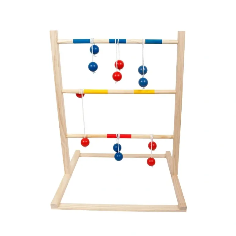 Jocul de ladder golf este ideal pentru activitati recreative in aer liber, oferind distractie si competitie pentru intreaga familie sau grupuri de prieteni. Setul include 2x3 bile de Ã5 cm, care trebuie aruncate pe cadrul cu trepte, avand scopul de a atinge si agaÈa bilele pe fiecare dintre cele trei trepte. Cu dimensiunile de 60Ã50Ã90 cm, acest joc este suficient de compact pentru a fi folosit atat in gradina, cat si pe terenuri de joaca sau la petreceri in aer liber. Designul sau simplu dar captivant permite jucatorilor de toate varstele sa participe, dezvoltand coordonarea si abilitatile de directionare. Perfect pentru momente de relaxare sau competitii prietenoase, acest joc poate deveni rapid un favorit in orice locatie.