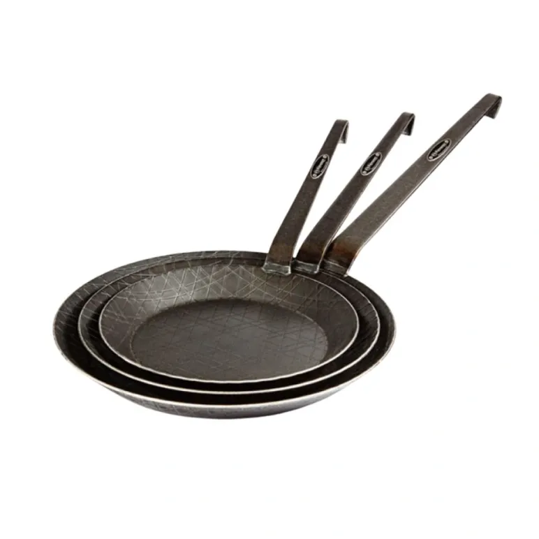Set tigai fier forjat Petromax, 3 marimi diferite, distribuie caldura constant si dezvolta o patina durabila, fiind potrivit pentru friptura, prajire, tocane rapide si preparate de mic dejun.