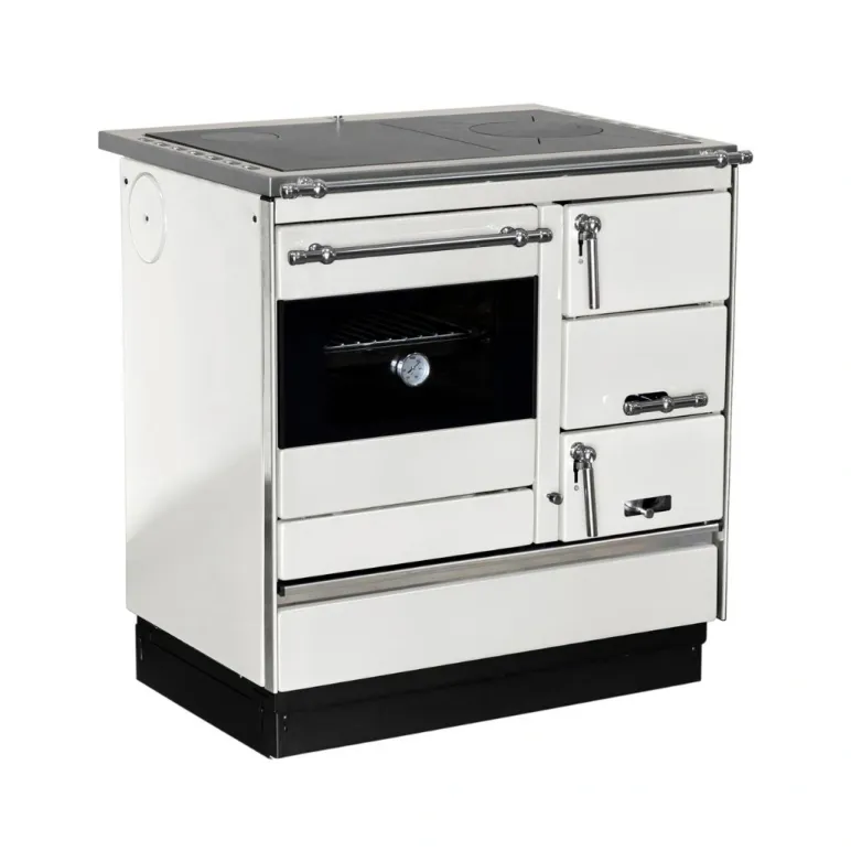 Functionarea pe lemne pastreaza avantajele gatitului traditional si contribuie la crearea unei atmosfere placute in incapere. In acelasi timp, soba poate fi folosita pentru prepararea diverselor retete si pentru coacere, fiind o solutie practica pentru utilizare constanta. Aspectul exterior in nuanta alba permite integrarea usoara in diferite stiluri de amenajare, oferind sobei un aspect placut si bine conturat.