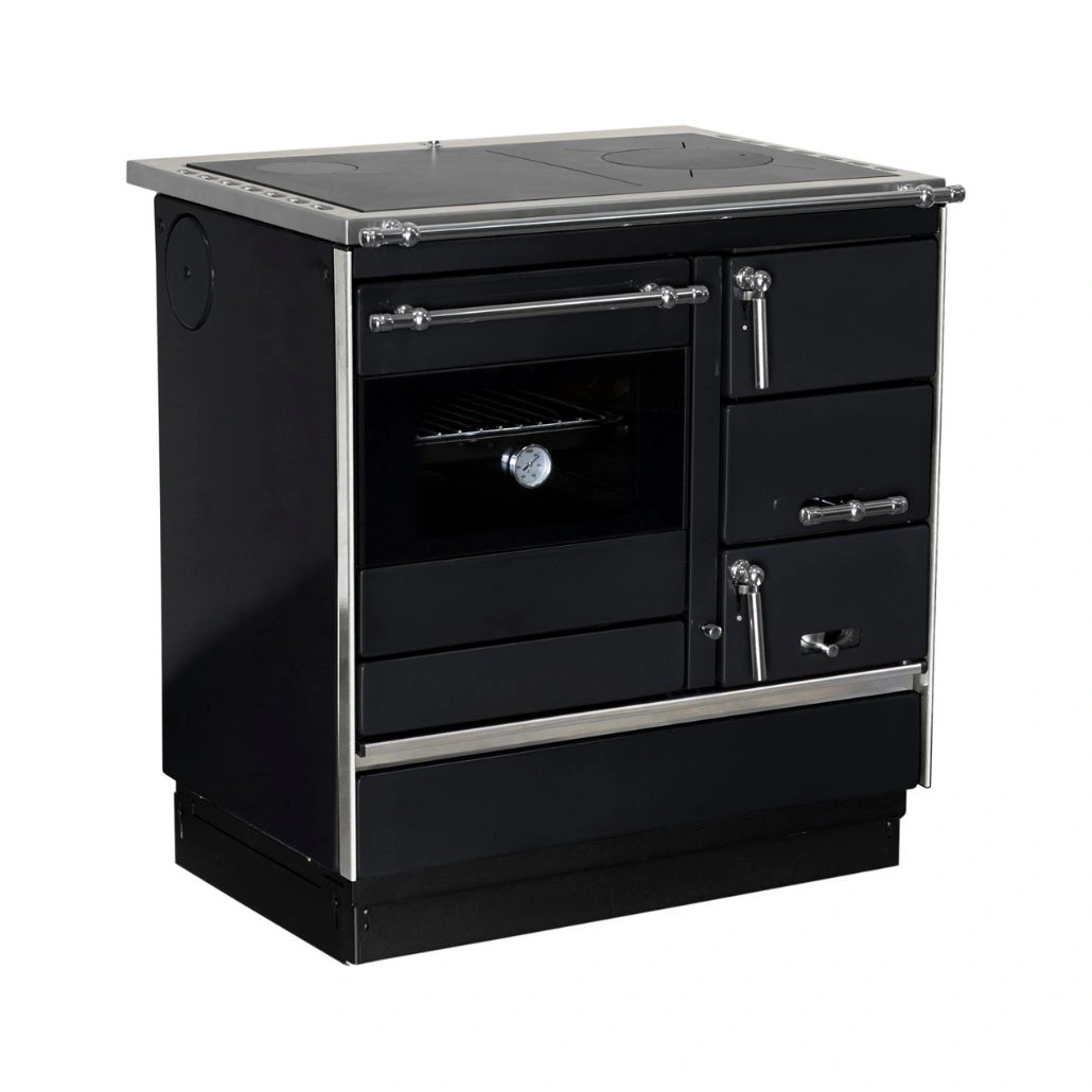 Functionarea pe lemne pastreaza avantajele gatitului traditional si contribuie la crearea unei atmosfere placute in incapere. In acelasi timp, soba poate fi folosita pentru prepararea diverselor retete si pentru coacere, fiind o solutie practica pentru utilizare constanta. Aspectul exterior in nuanta neagra completeaza armonios diferite stiluri de amenajare, oferind sobei o prezenta bine conturata si eleganta.