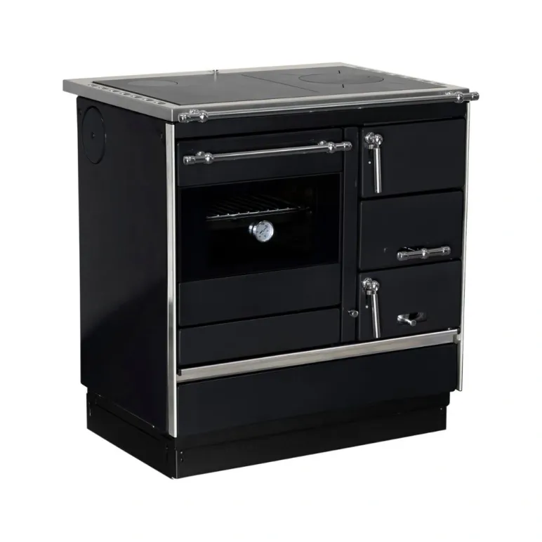 Soba de gatit pe lemne KING L Negru este conceputa pentru locuintele moderne in care sunt importante atat utilitatea practica, cat si aspectul placut al produselor integrate in bucatarie. Modelul reuneste intr-o forma echilibrata functiile necesare pentru gatit, coacere si incalzirea spatiului, pastrand in acelasi timp farmecul utilizarii lemnului ca sursa naturala de combustibil.