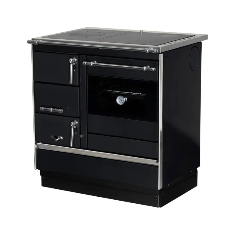 Functionarea pe lemne pastreaza avantajele gatitului traditional si contribuie la crearea unei atmosfere placute in incapere. In acelasi timp, soba poate fi folosita pentru prepararea diverselor retete si pentru coacere, fiind o solutie practica pentru utilizare constanta. Aspectul exterior in nuanta neagra completeaza armonios diferite stiluri de amenajare, oferind sobei o prezenta bine conturata si eleganta.