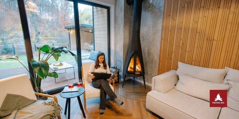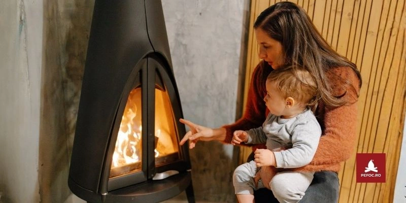 Soba cu lemne model canadian, material de fonta, design modern pentru living
