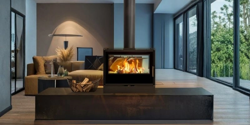 Varianta tunel: sticla pe doua parti, foc vizibil din doua incaperi