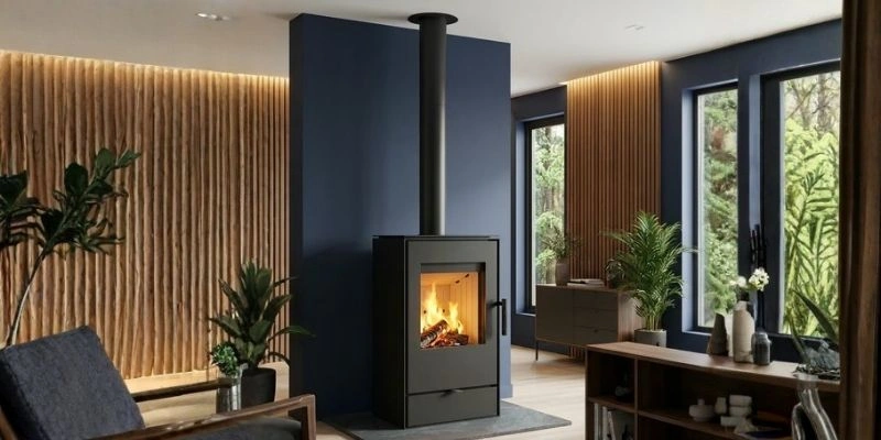 Soba Rollo este o soba pe lemne cu design geometric si geam generos, cu camera etansa si admisie de aer exterior pentru ardere stabila si emisii reduse, inclusiv in case bine izolate.