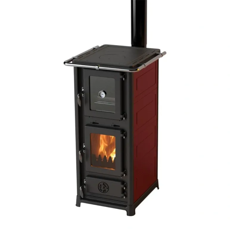Soba pe lemne OLYMPIA II Rosu inchis 8.5 kW, este conceputa pentru cei care cauta o sursa de incalzire eficienta, completata de functionalitati practice pentru utilizarea de zi cu zi. Modelul combina incalzirea pe lemne cu posibilitatea de gatire, fiind echipat cu plita si cuptor, ceea ce il transforma intr-un element util in gospodarie.