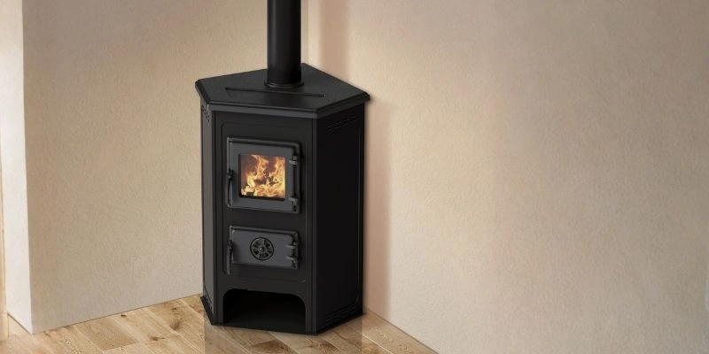 Soba pe lemne SD CORNER ECO Negru este un model compact, cu plita superioara, potrivit pentru amplasare pe colt si incalzirea eficienta a locuintei.