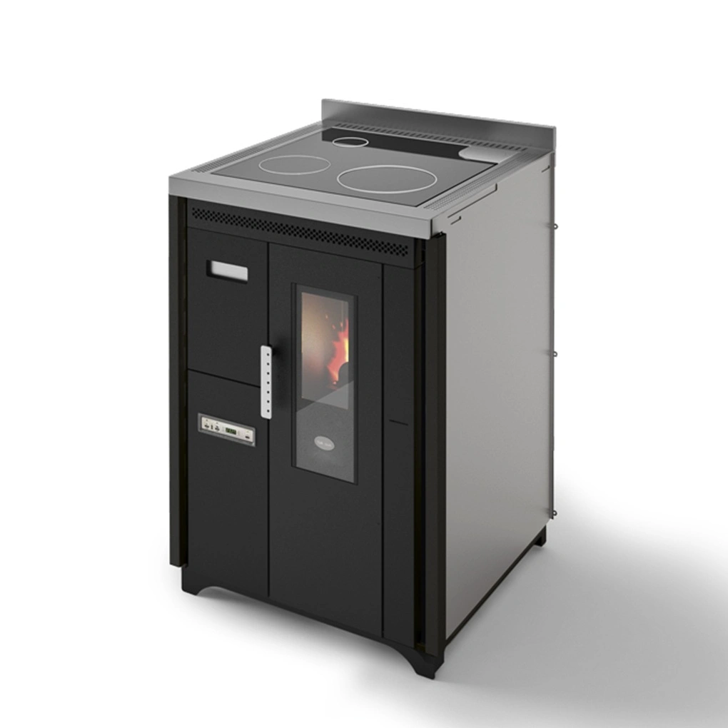 Cu un randament ridicat (circa 90%), soba pe peleti Nina reprezinta un produs special, fiind dotat cu plita din otel, certificata pentru gatit.