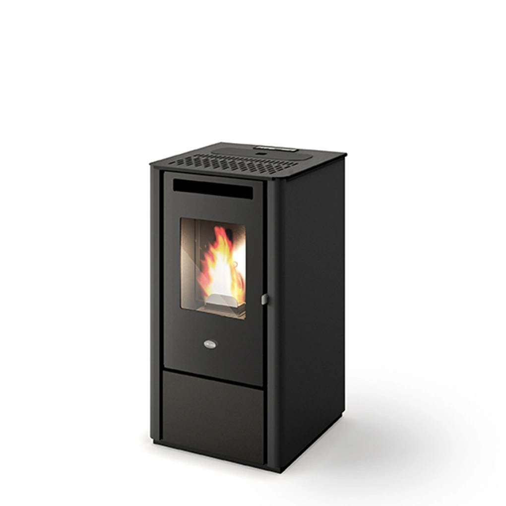 Soba pe peleti de dimensiuni mici cu invelis culoare neagra si ventilatie fortata, cu un design exclusivist, modern si elegant, care se preteaza oricarei locuinte, cabane sau case de vacanta, transformand ambientul interior intr-o atmosfera calda si primitoare. Soba ofera un proces de ardere ecologic si eficient, facand parte din dispozitivele incadrate la clasa economica A+, prezentand un consum redus de combustibil, dar un randament foarte mare (90%). Modul in care este conceputa si sistemul de imbinare inovativ, ridica soba la un nivel inalt de calitate si design.