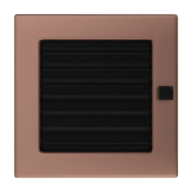 Grila Stejar cu jaluzea si aspect simplu, usor de integrat in decorul semineului. Are culoarea cuprului si dimensiunile de 17/17 cm.