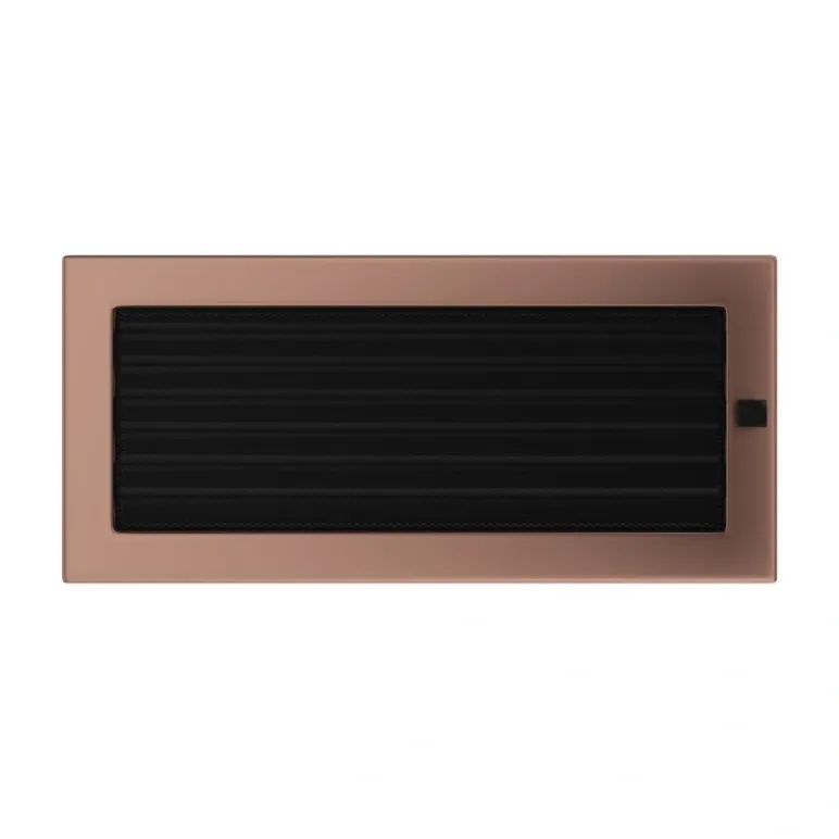 Grila pentru aerisire, cu jaluzea si dimensiunea de 17/37 cm. Realizata din material metalic si vospita electrostatic in nuanta cuprului.