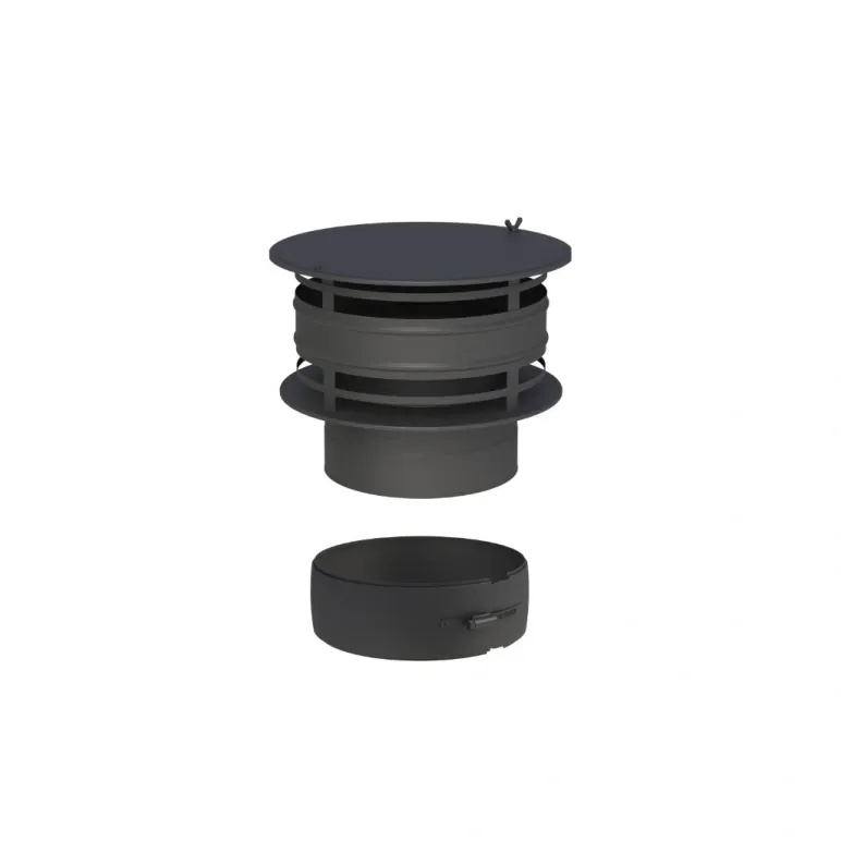 Acoperit cu vopsea neagra aplicata electrostatic, asigura rezistenta in timp si un finisaj modern, perfect integrat in designul cosului de fum.