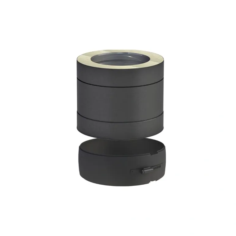 Rezista la temperaturi mari de pana la 450*C, foarte sigur in exploatare, cu o grosime a vatei de izolare de 50 mm. Este vopsit electrostatic in negru pentru un aspect deosebit oriunde este montat. De aceea, nu necesita imbracaminte aditionala.