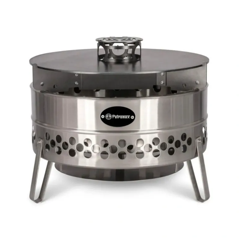 Vatra de foc Petromax Tyropit cu plita disc tip plancha imbina atmosfera focului de terasa cu gatitul pe jar, intr-un corp din inox cu tiraj constant si fum redus.