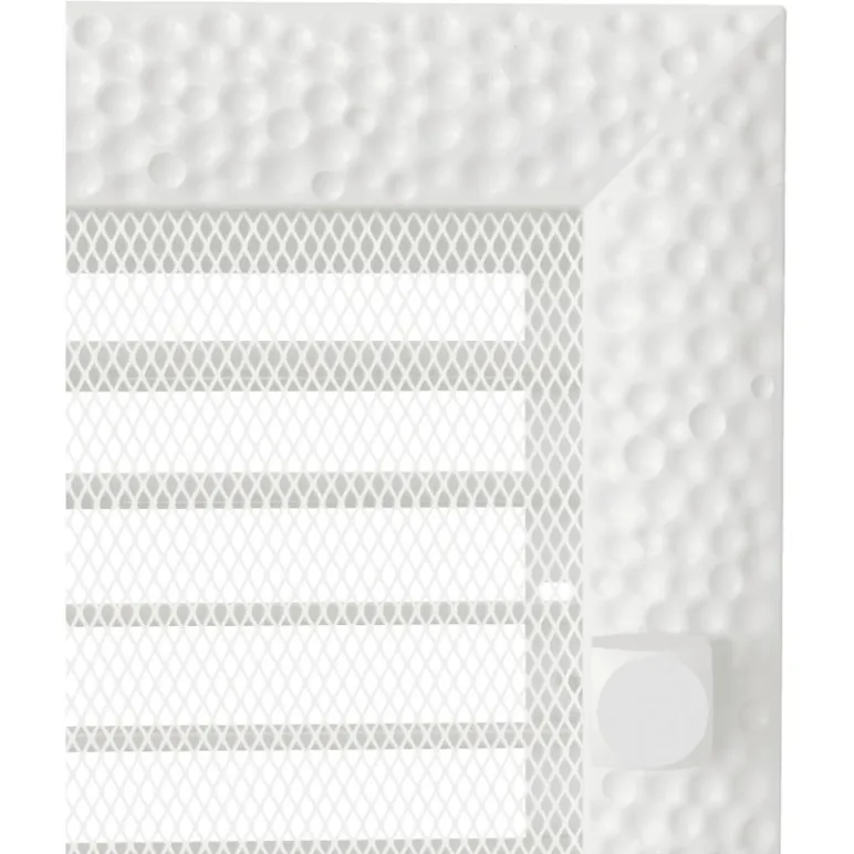 Grila de ventilatie alba, din metal de inalta calitate, cu design perforat si jaluzele reglabile, permite o distributie uniforma a aerului, control usor si montaj rapid.