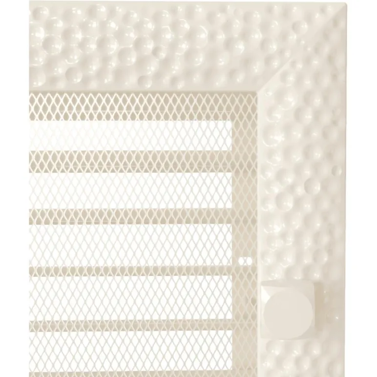 Grila de ventilatie crem, metalica si durabila, cu design perforat modern si jaluzele reglabile, asigura o circulatie eficienta a aerului, control optim si montaj simplu.