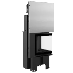Focar cu sticla pe doua laturi, prevazut cu deschidere verticala, prin glisarea usii, oferind un plus de confort acestuia. Usa este prevazuta si cu deschidere standard, orizontala, pentru o curatare usoara a sticlei. Focarul este echipat la nivelul conului cu sistem de recuperare a caldurii, compus dintr-o teava orizontala ce preia din caldura gazelor de evacuare, crescand eficienta acestuia. Datorita samotei de la interior si a sistemului de tripla combustie, procesul de ardere al lemnului este mai eficient si mai economic. Focarul este dotat cu racord reglabil la 360 grade, pentru a facilita racordarea acestuia la cosul de fum.