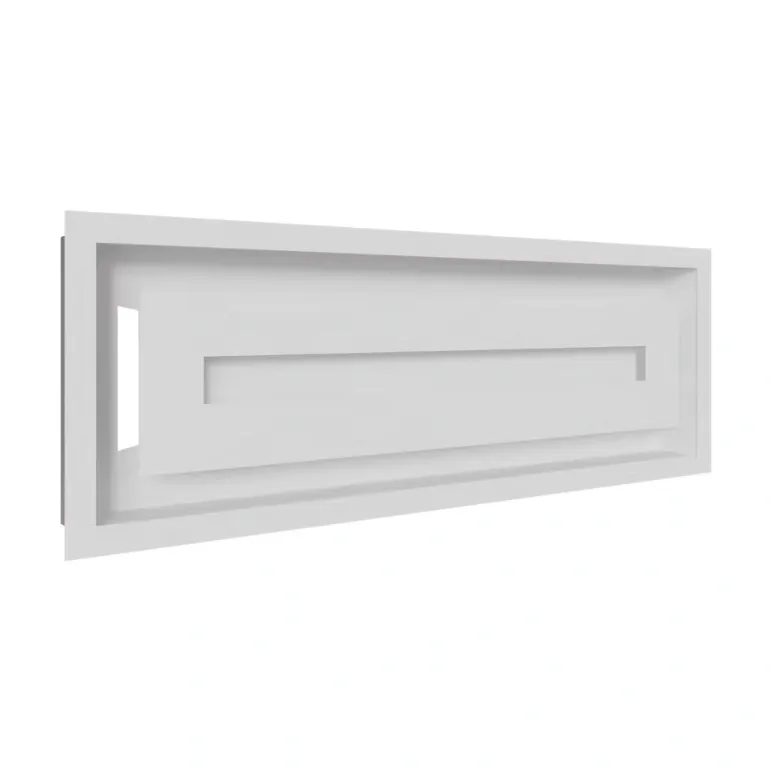 Grila WIND alba, cu design minimalist, asigura flux eficient de aer si durabilitate ridicata, fiind ideala pentru ventilatie si distribuirea aerului cald din seminee.